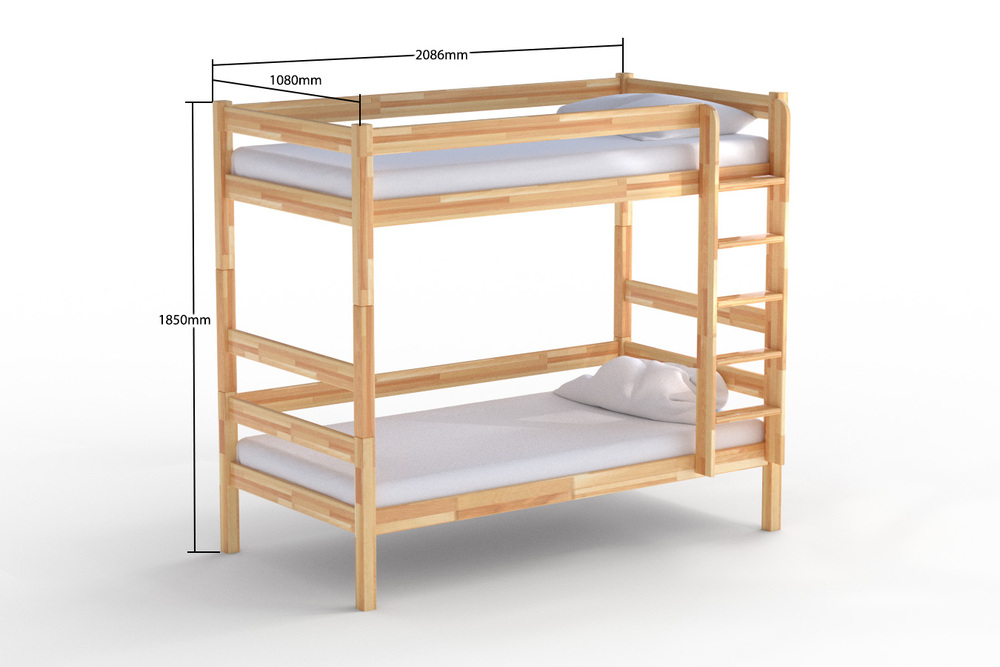 Klasiska tipa divstāvīgas bērza masīvkoka gultas paredzēta gan bērniem, gan pieaugušiem.