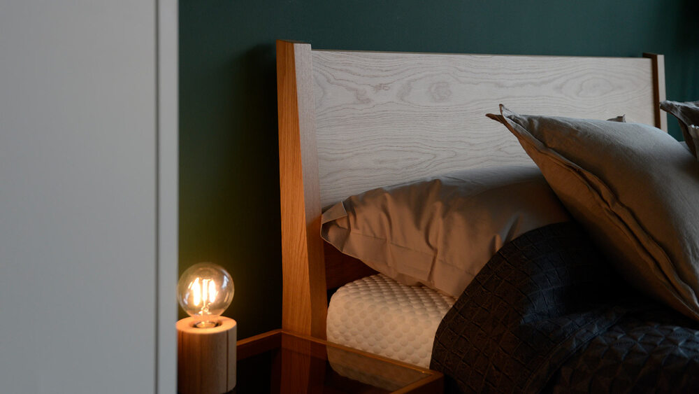 Ножки кровати подчеркивают его дизайн и образуют пропорциональный вид, который позволяет постели поместиться в разных интерьерах.